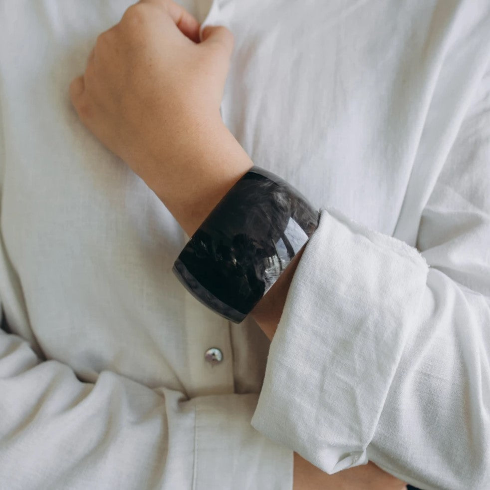 Grâce à son superbe effet marbré, ce bracelet arbore un mélange de tons naturels, chaleureux et intemporels, parfait pour s’accorder à des looks neutres, bohèmes ou sophistiqués.