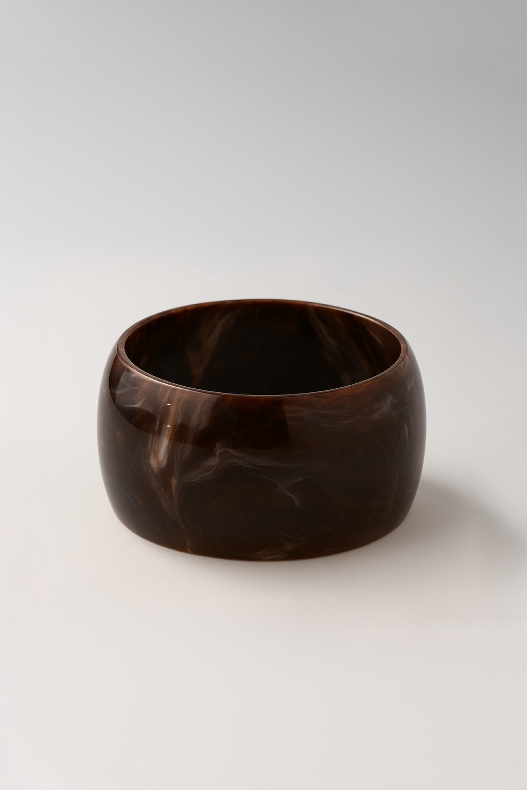 Ajoutez une touche d’élégance graphique à votre style avec ce bracelet jonc épais en résine opaque marbré marron foncé et blanc.